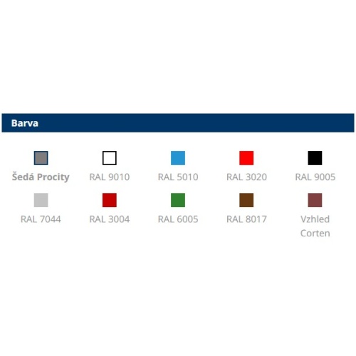 - Povrchová úprava: lakováno na žárový zinek, standardně šedé.