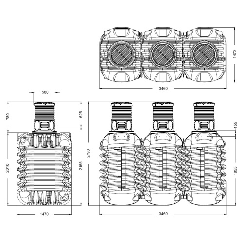 - Jednotlivé nádrže disponují objemem 2,5 m3.